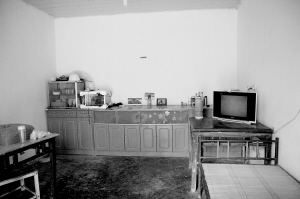 在怡兴苑小区一栋住宅楼的八楼,是小区保安员的宿舍,颜炳健生前就和所有保安员一起住在这间60多平方米的集体宿舍里,其他保安员一个房间,他和老婆家人一个房间。